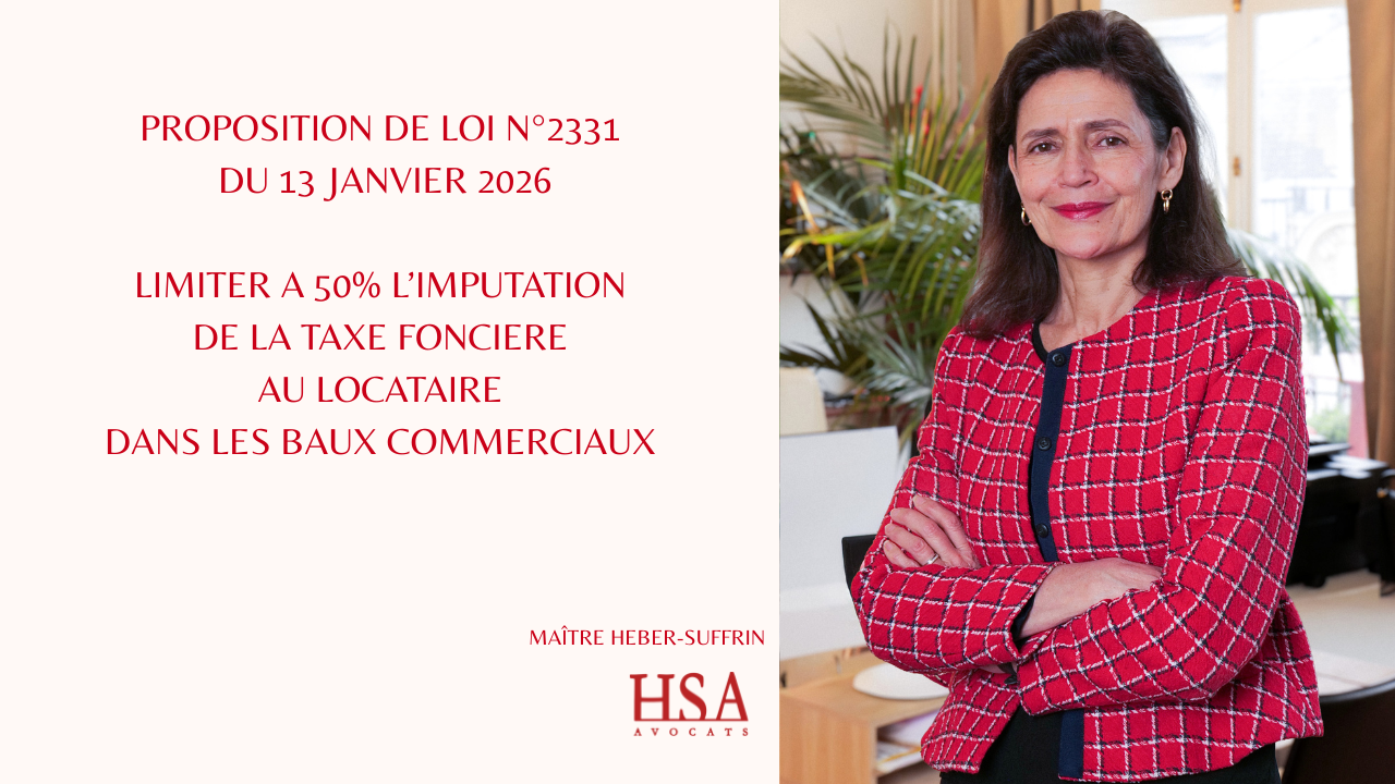 Une proposition de loi n°2331 déposée le 13 janvier 2026 vise à limiter l’imputation de la taxe foncière au locataire dans les baux commerciaux.